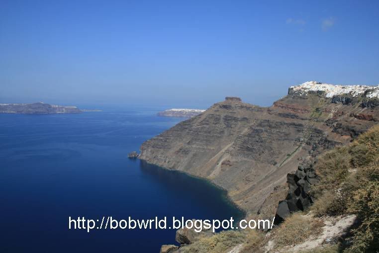Fira is the main town of Santorini, where most of the cruise will stop for its guest to get-off for a day trip before it disembark again in the evening. From here, we could enjoy the views from the edge of the caldera over the cliffs. Commercial activities are always bustling along the pedestrian alleyways as you can find scores of jewelery, restaurants, arts and souvenir shops. When you go into a shop, rest assure that you will not be bothered by the sales people, unless you need their assistance. Whilst price are pretty standard, you could still drive a bargain to get a good deal. There are scores of gift shops in Fira, so you can take your time to hop from one shop to another to compare prices. If you are tired, you can always go to one of the roof top cafe to have a drink and enjoy the view.